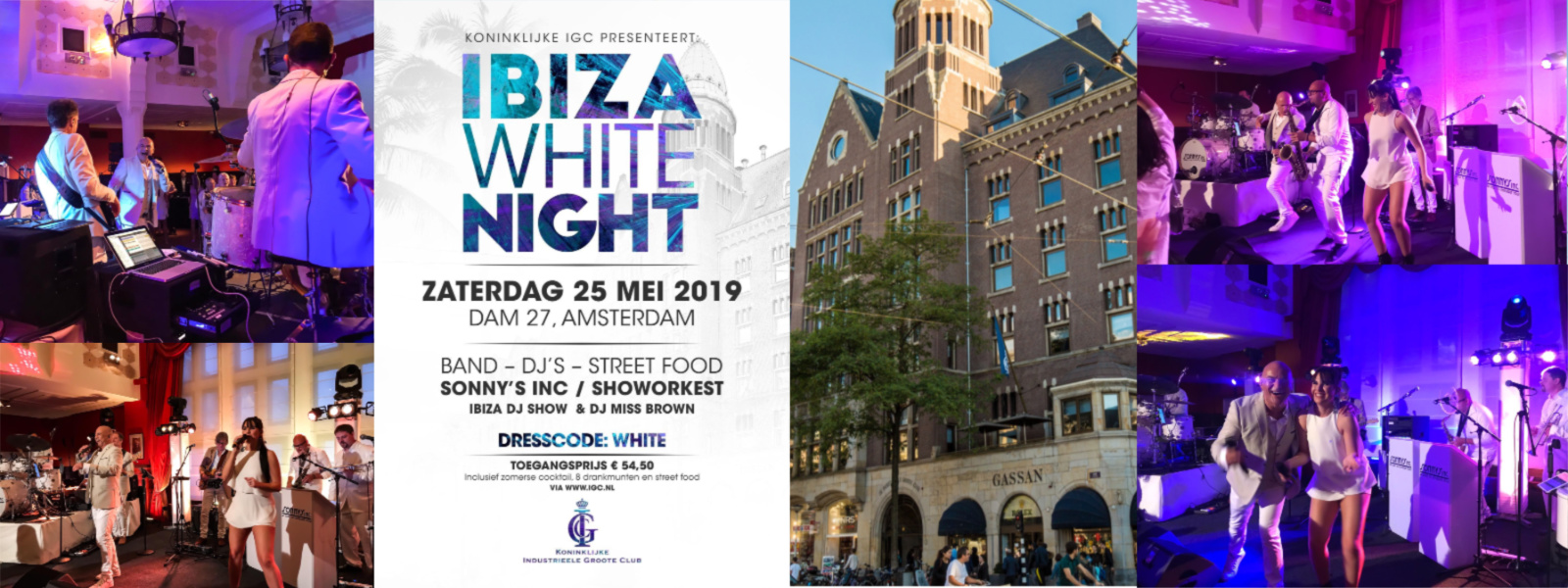 Groots was het feest van De Koninklijke Industrieele Groote Club waar wij afgelopen zaterdag mochten spelen en entertainen — wat hebben we genoten! Twee jaar geleden was het thema Bal Masqué en dit jaar stond de avond in het teken van Ibiza White Night. Mooi om te zien hoe iedereen telkens weer zijn uiterste best doet om volledig in het thema mee te gaan. De gasten zagen er prachtig uit.