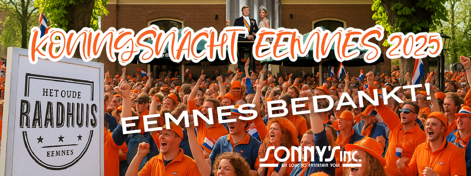 Het duurde even voordat we dit bericht konden schrijven (drukte hè), maar wát een avond was het op Koningsnacht 2025! Sonny’s Inc. zette traditiegetrouw het “plein” in Eemnes bij het Oude Raadhuis volledig op z’n kop – en dit jaar ging het echt next level.